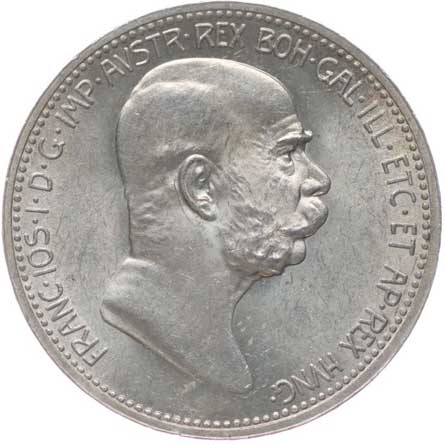1907. 5 Koruna 1908 b.zn. - jubilejní st. po sp. v av. 2/2 360,- --.-