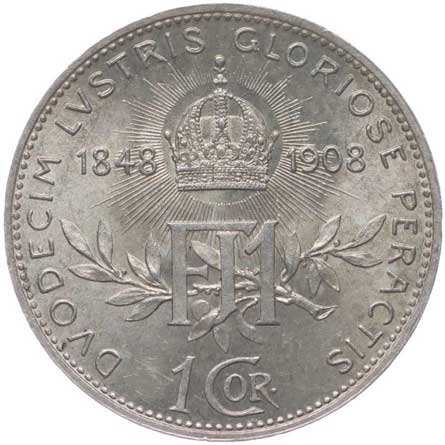 1909. 5 Koruna 1908 b.zn. - jubilejní -1/1 1000,- --.-