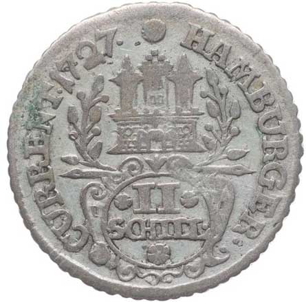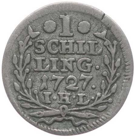 2734. Schilling 1727 I.H.L., KM.160, Sch.21 -1/1- 120,- --.-