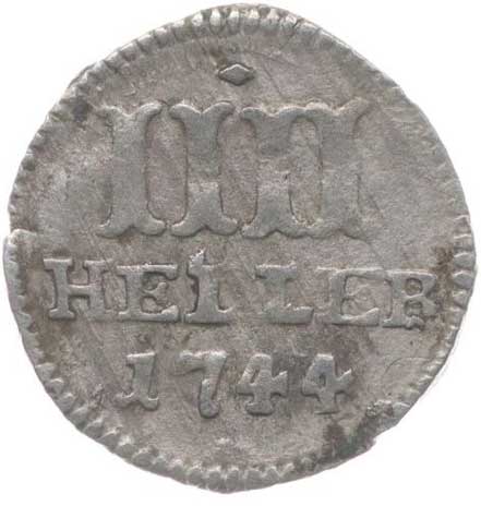 2740. IIII Heller 1744, Sch.50, KM.402 -1/1- 100,- --.-