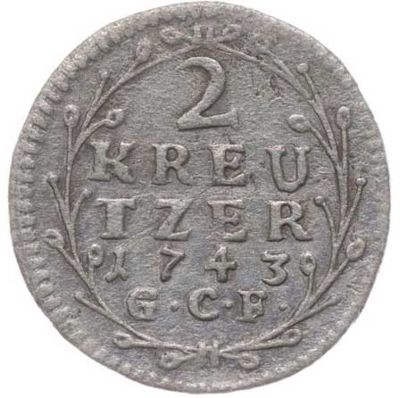 2742. 2 Krejcar 1743 G.C.F., Sch.59, KM.173 1/1 130,- --.-
