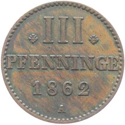 2758. III Pfennig 1862 A, KM.45, AKS.74 1/1 130,- --.-