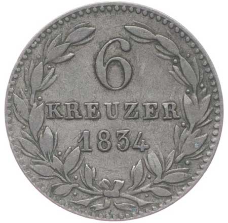2760. 6 Krejcar 1834, KM.53, Cr.42a, AKS.46 -1/1- 160,- --.-