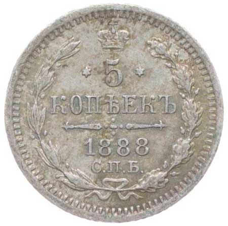 3230. 5 Kopějek 1888 SPB/AG, Y.19a.1, Uzd.1987 skup.XIX-E/d 1/1 360,- --.-