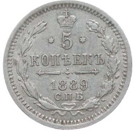3231. 5 Kopějek 1889 SPB/AG, Y.19a.1, Uzd.1994 skup.XIX-E/d 1/1 320,- --.-
