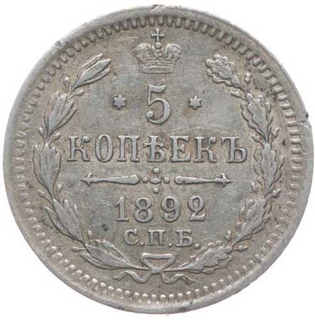 3232. 5 Kopějek 1892 SPB, Y.19a.1, Uzd.2012 skup.XIX-E/d 1/1 320,- --.-