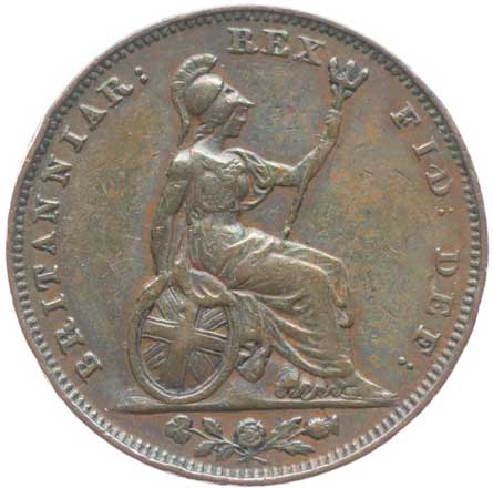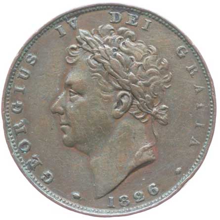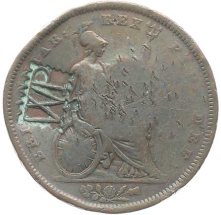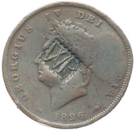 3277. Penny 1826 (Cu), KM.693 - s kontramarkou "WP" v av. a rev.