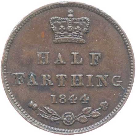 3288. 1/2 Farthing (1/8 Pence) 1844, KM.738, S.3951 1/1 150,- --.-