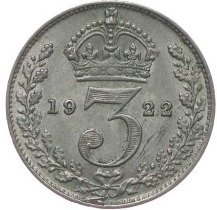 3296. 3 Pence 1922, KM.813a, S.4026 1/1 120,- --.-