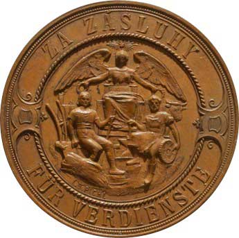 | 1323. | Za zásluhy, sedící dva řemeslníci, nad nimi anděl / Ústř. hosp. společnost