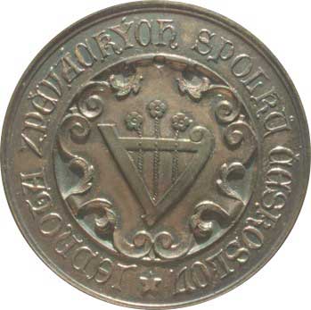| 1326. | Jednota zpěváckých spolků Českoslov. Opis, lyra / V lipovém věnci vyryto