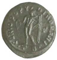 220. Redukovaný centenionalis R: GLORIA EXERCITVS, dva vojáci, dvě