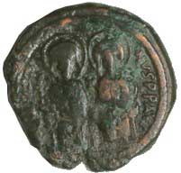 331. Anonymní follis třídy C A: Půl postavy Krista čelně R: Kříž, v úsečích