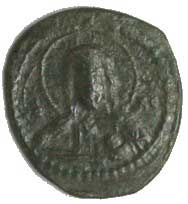 329. Anonymní follis třídy A2 A: Poprsí Krista čelně R: Čtyřřádkový nápis