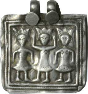 377. Ag přívěsek s dvojitým závěsem " Tři korunované postavy", stříbrný ple
