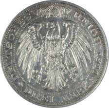 1072. 3 Marka 1914 Wilhelm II. KM 538 -1/1 550,- --.-