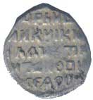 1213. Imitace kopějky. Stylizované poprsí korunovaného panovníka s mečem /