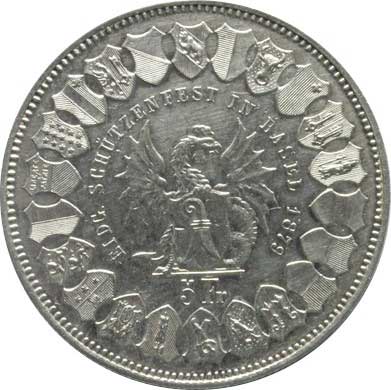 1253. 5 Frank 1875 - střelecký - Bazilej KM 14 S 1/1 4800,- --.-