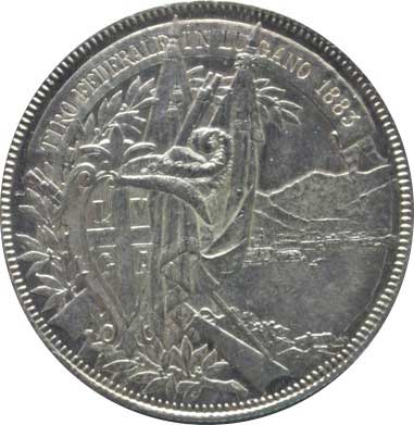 1254. 5 Frank 1883 - střelecký - Lugano KM 16 S 1/1 4600,- --.-