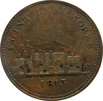 1264. Token penny 1813 A: Text, hodnota R: FLINT LEAD WORKS pohled na