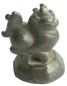 1289. Opiové závaží v podobě kachny o váze 5 baht na šesti bokém podstavci