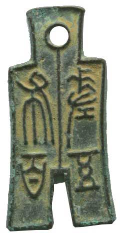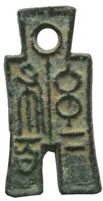 1291. Mince Pu v hodnotě 500. Pozdější ražba, lito již od konce dynastie Ming
