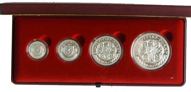 | 1340. | Sada stříbrných odražků svatováclavských dukátů 2025. Ag 0,999