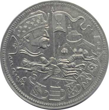 1876 / VEŠKERÁ MOC…. Kroměřížský sál BABKA lehčí bílý kov 60 mm 24,63 gr. A i R menší vady materiálu |