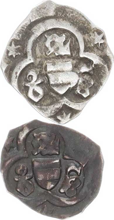| 603. | 2 Pfennige 1515, 1519 2 ks 1x dírka | 2-2 | 150,- | --.- |