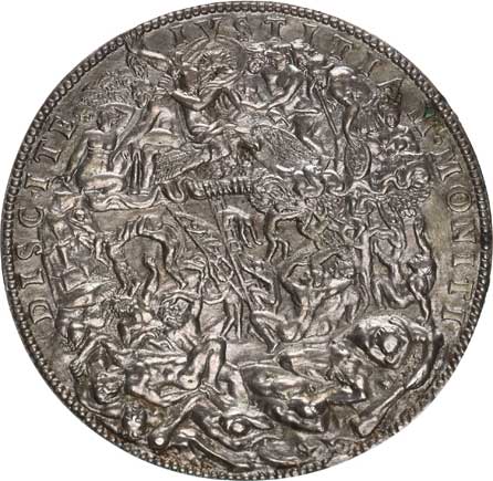 gu v roce 1547, Poprsí císaře zprava, opis / po celé ploše směsic e lidí a zvířat, opis: DISCITE IVSTITIAM MONITI Ag ? 70 mm 67,18 g |