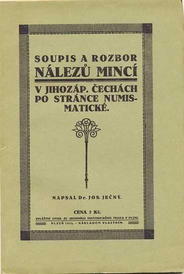 nce numismatické vyd. Plzeň 1921 (Zvláštní otisk ze sborní ku Histor. musea v Plzni) 38 stran (ještě nerozřezáno) brožo vané |