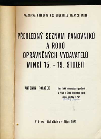 | 379. | Poláček A.: Přehledný seznam panovníků a rodů oprávněných vydavat