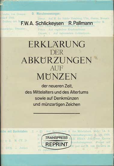 417. Schlickeysen/Palmann: Erklärung der Abkürzungen auf Münzen der