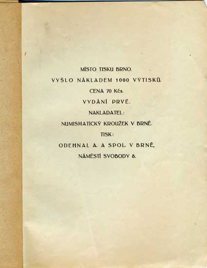 topeč 1926 a Bošovic 1879) Numismat. sborník IV / 1957