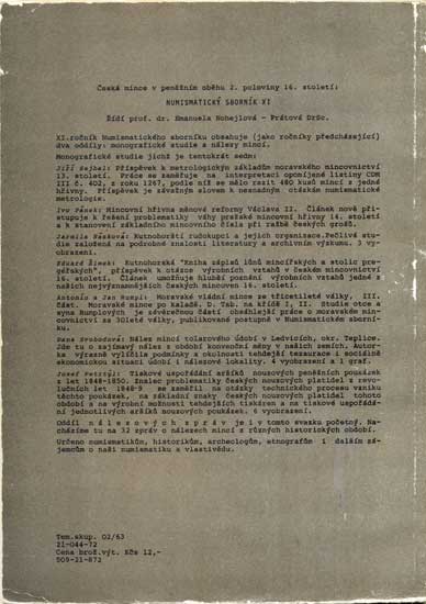 Numism. sborníku II, 1955 23 str. +1 tab. brožované