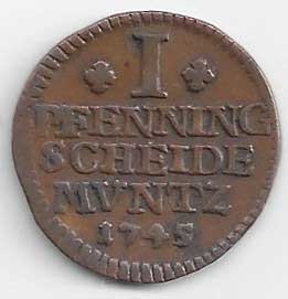 | 114. | 1 Pfennig 1745 IBH, KM:901.2, ned. | 1/1 | 40,- | 150,- |
