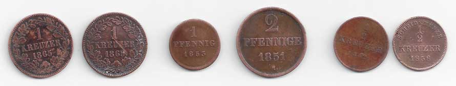 | 117. | Baden: 1 Kr 1865, 1869, KM:242, Bavorsko: 1 Pf 1853, KM:420