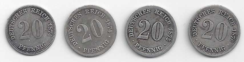 | 118. | 20 Pfennig 1874 A, 1874 F, 1975 F, 1876 F, KM:5 | -1 až 2- | 50,- | 220,- |