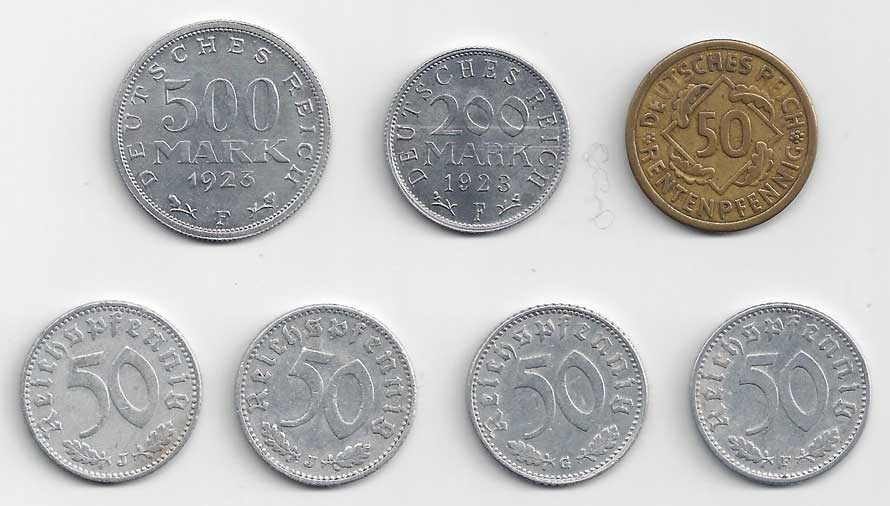 | 119. | 500 M 1923 F, KM:36, 200 M 1923 F, KM:35, 50 Rentenpf. 1924 A, KM:34