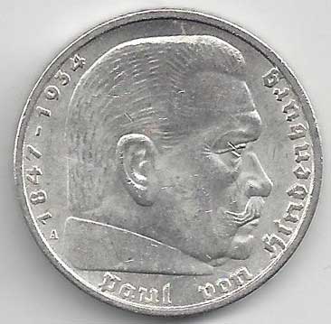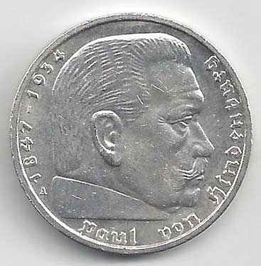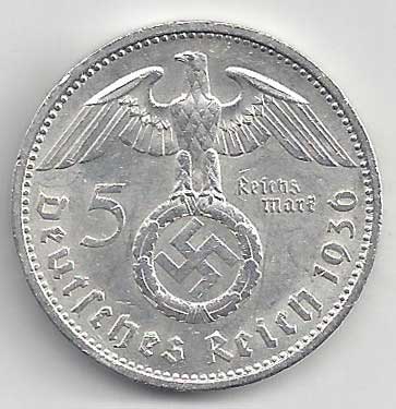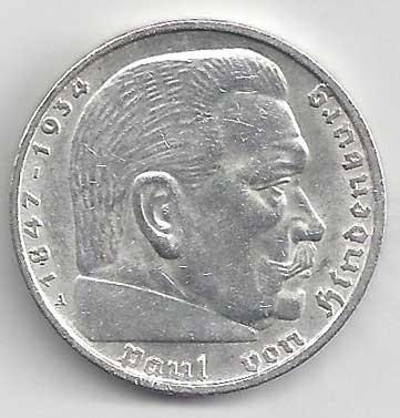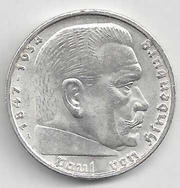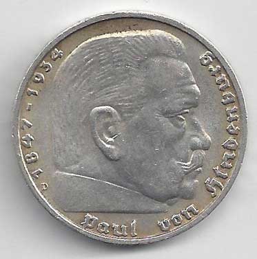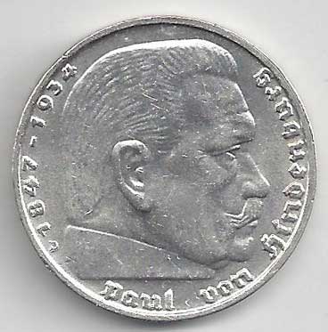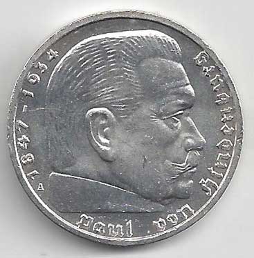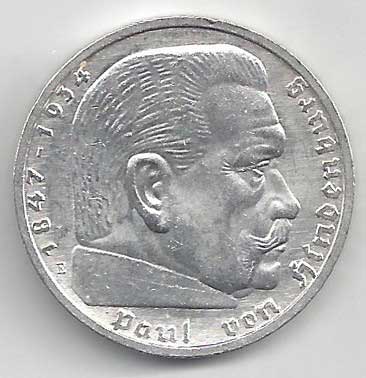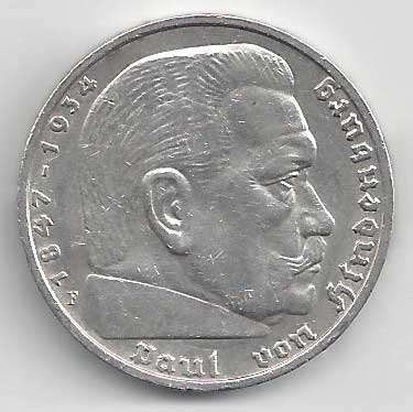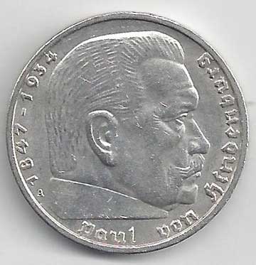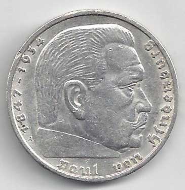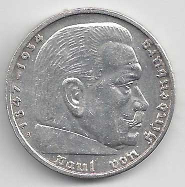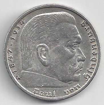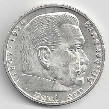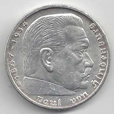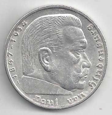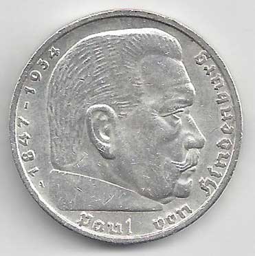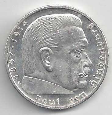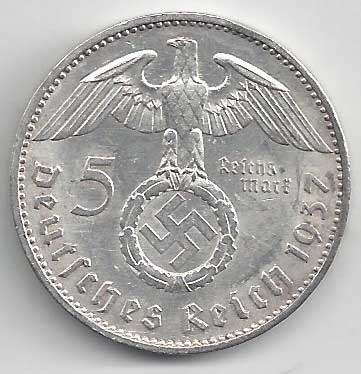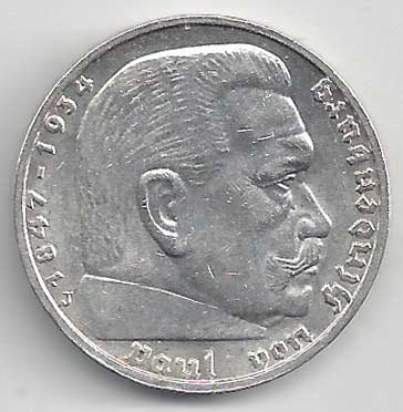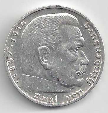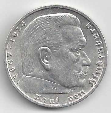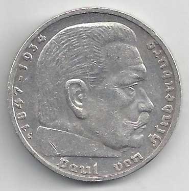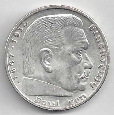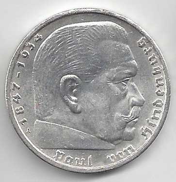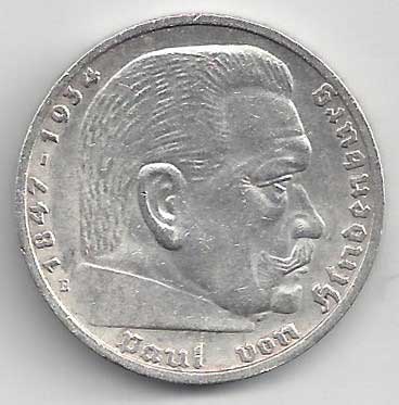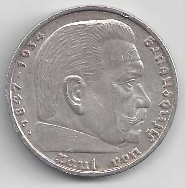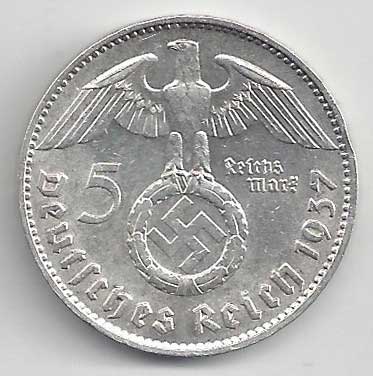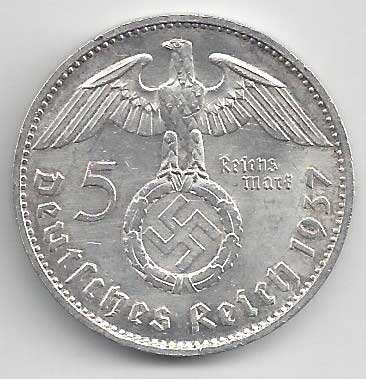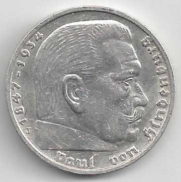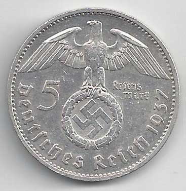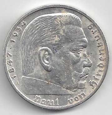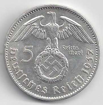 | 134. | 5 Reichsmark 1937 F, KM:94 | +1/1+ | 160,- | 240,- |