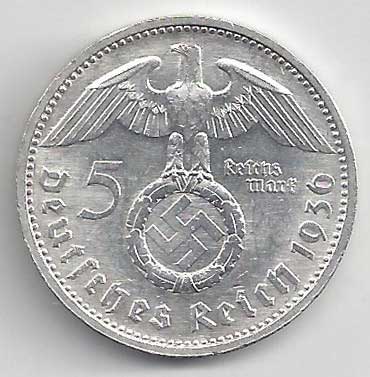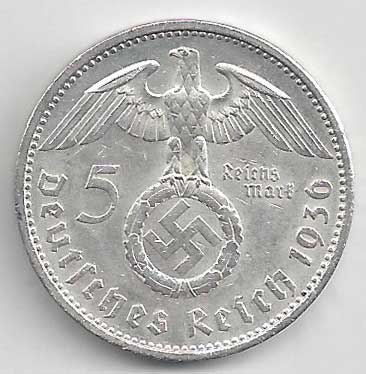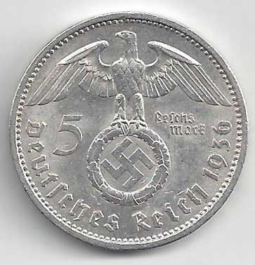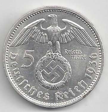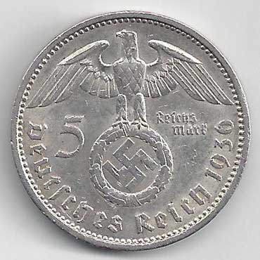 | 126. | 5 Reichsmark 1936 A, KM:94 | 1/1 | 160,- | 160,- |