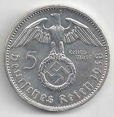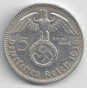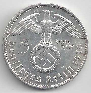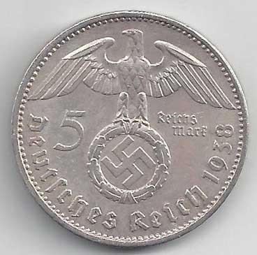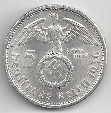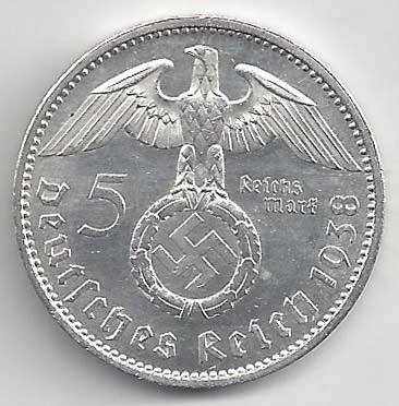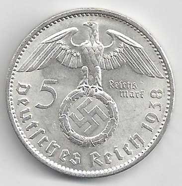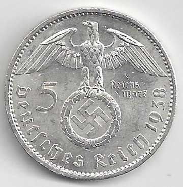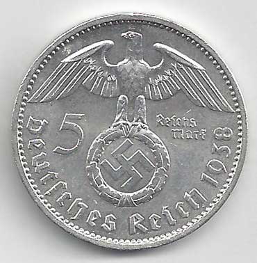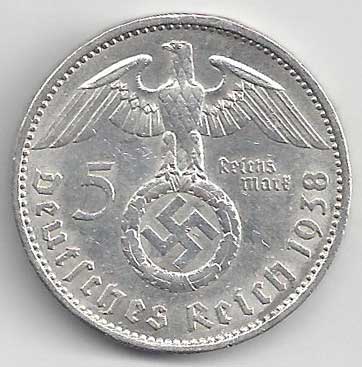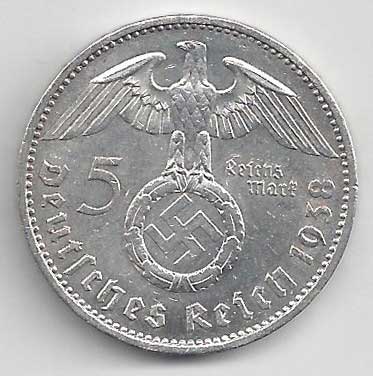 | 139. | 5 Reichsmark 1938 A, KM:94 | 1/1 | 160,- | 160,- |