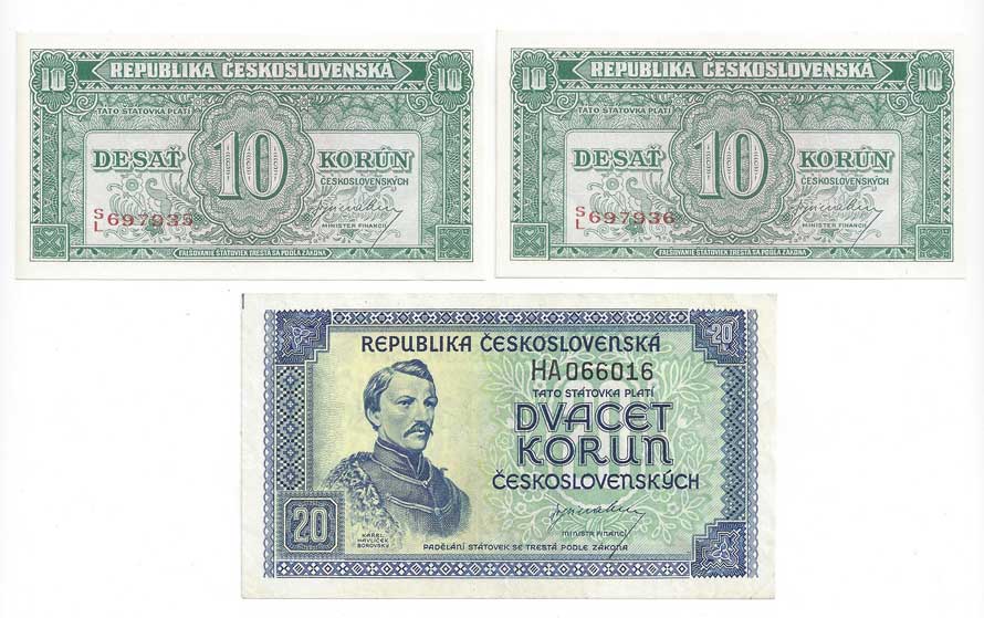 | 305. | 10 Kč bl.(1945), sér.S/L, neperfor., H:71a1, 2 ks - postupka