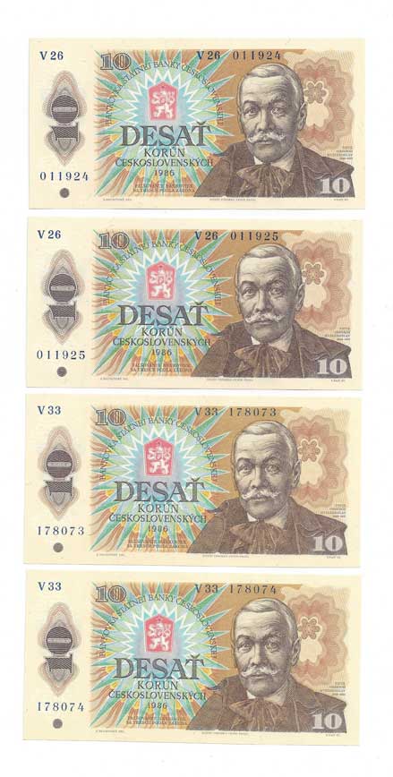 | 313. | 10 Kčs 1986, sér.V 26, 2 ks - postupka, sér.V 33, 2 ks - postupka,