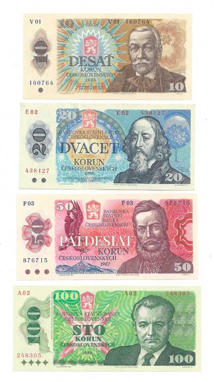| 314. | 10 Kčs 1986, sér.V 01 H:107a, 20 Kčs 1988, sér.E 02, H:109a, stopa