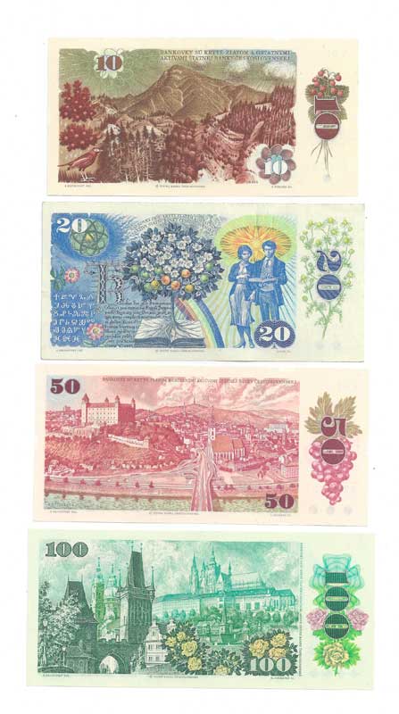 po sponce, 50 Kčs 1987, sér.F 03, H:108a, 100 Kčs 1989, sér.A 02, H:110a |