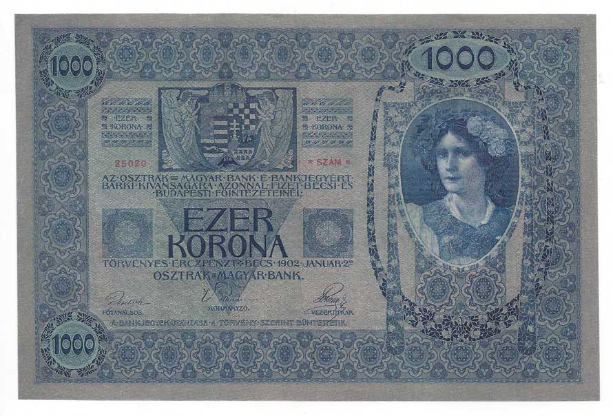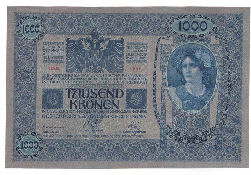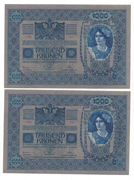 | 334. | 1000 Korun 1902/1920, sér.1580, přetisk Deutschoesterreich,