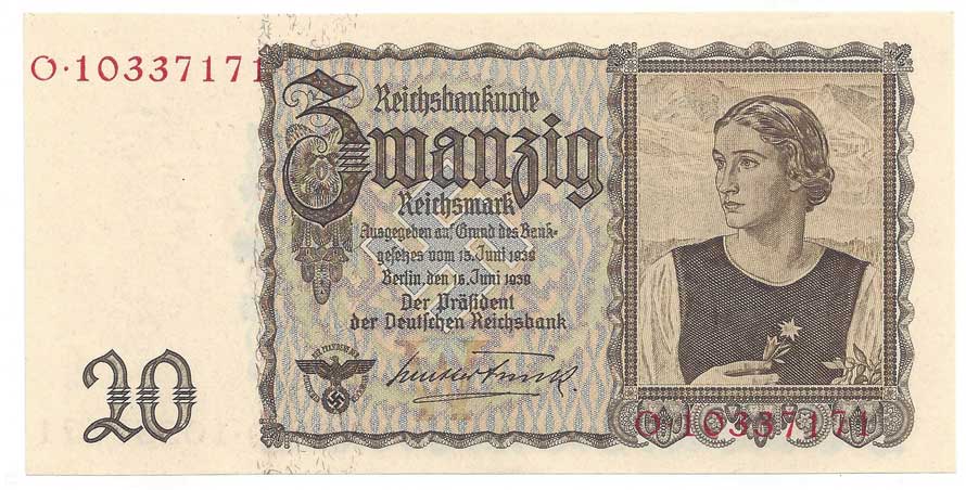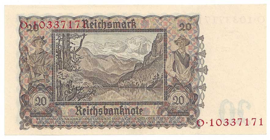 | 332. | 20 Reichsmark 1939, poslední série O, Pick:185 | t.N | 800,- | 800,- |