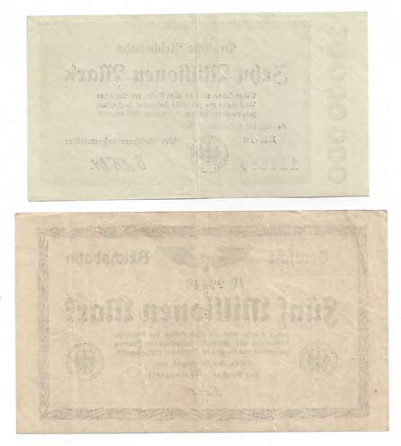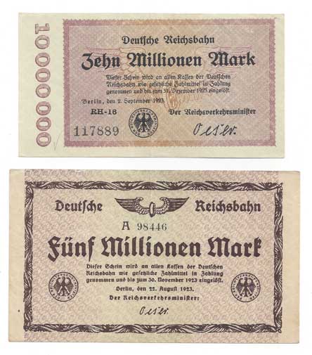 | 333. | Berlín, 10 Millionen Mark 2.9.1923, sér.RH-16, 5 Millionen Mark 22.8.