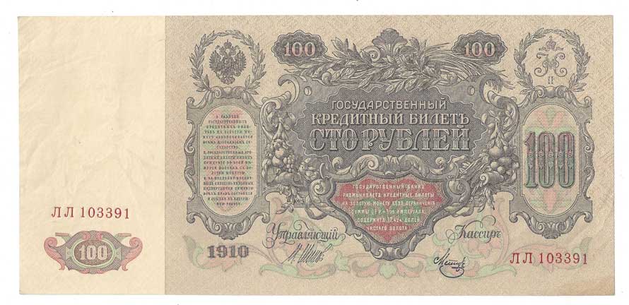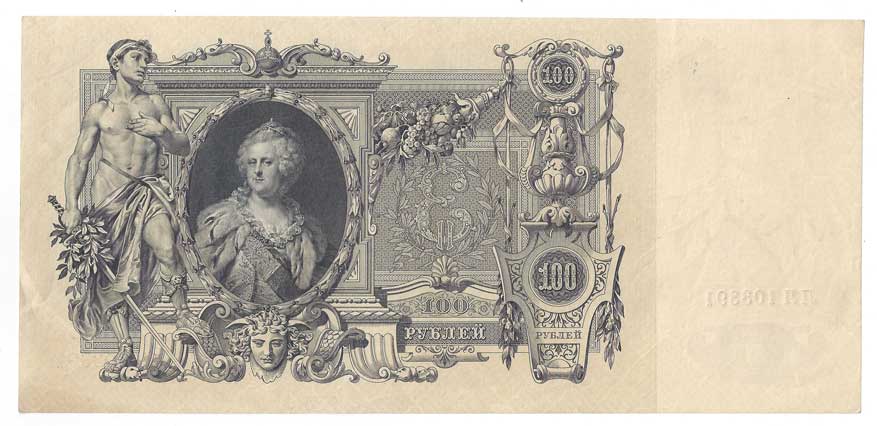 | 337. | 100 rublů 1910, Kateřina II., Šipov, sér.LL, Pick:13b, lehce pomačkané